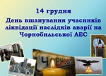 14 грудня - День вшанування учасників ліквідації наслідків аварії на Чорнобильській АЕС
